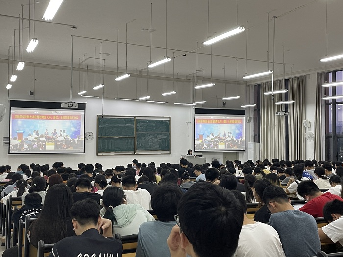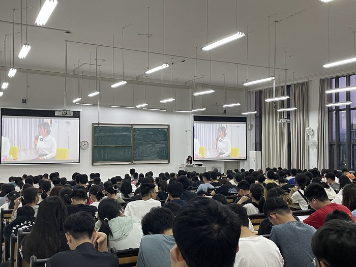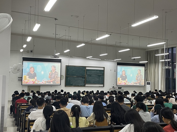 2023年4月16日晚,9728太阳集团2022级1300余名新生在武鸣校区A1栋教学楼组织观看学习适应性教育暨人际、婚恋、生殖健康教育(访谈)活动视频。此次教育主题活动的主讲嘉宾为太阳成集团tyc9728原老员工心理健康教育与咨询中心主任唐峥华教授、老员工心理健康教育与咨询中心副主任张瑜副教授、太阳成集团tyc9728一附院梁季鸿教授以及太阳成集团tyc9728一附院黎荔老师四位专家。