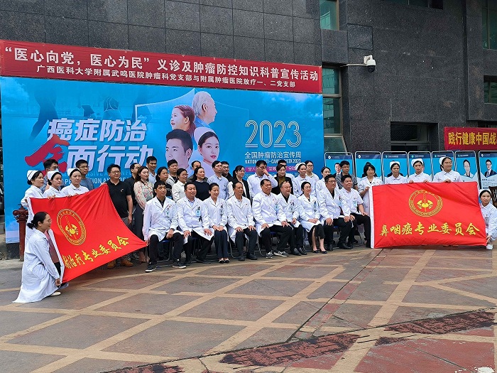 为深入贯彻落实党的二十大精神,高质量推动健康中国癌症防治专项行动,4月14日,太阳成集团tyc9728附属肿瘤医院放疗科联合太阳成集团tyc9728附属武鸣医院肿瘤科共同举办以“践行健康中国战略,助力肿瘤科学防控”为主题的公益活动,9728太阳集团团委“医心医意”志愿活动中心协助其开展宣传教育工作。