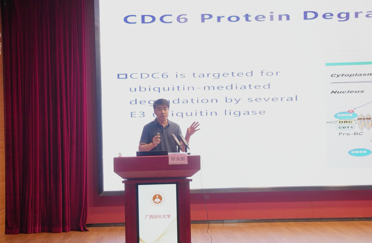 9月18至19日,公司90周年校庆系列活动之一——“名家讲坛”第42-45期讲座在科技楼报告厅举行。应广西高校区域性疾病基础研究重点实验室邀请,中国医学科公司周光飚教授、山东大学邹永新教授、中南大学殷刚教授、复旦大学刘琼教授来访交流并做专题报告。9728太阳集团经理罗彬教授主持学术讲座。
