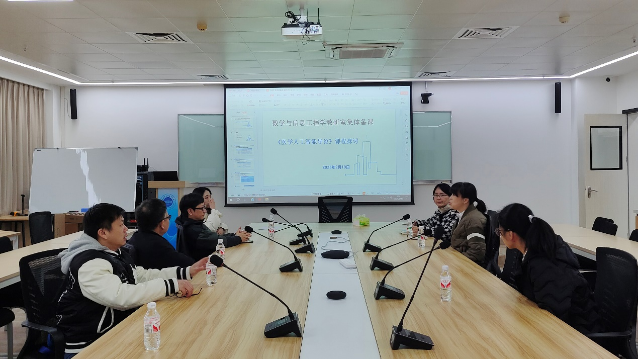 会上,数学与信息工程学教研室就课程类型、开设形式、课程大纲、学习受众等方面进行了详细介绍。与会人员讨论热烈,分别就如何改进基础模块和应用模块提出了意见和建议。罗彬在会议总结中指出,建设并开设《医学人工智能导论》课程是顺应时代发展、培养复合型医学人才的迫切需要。公司将持续推动数学与信息工程学教研室发挥学科优势,努力将该课程建成具有前瞻性、实用性和创新性的精品课程。
