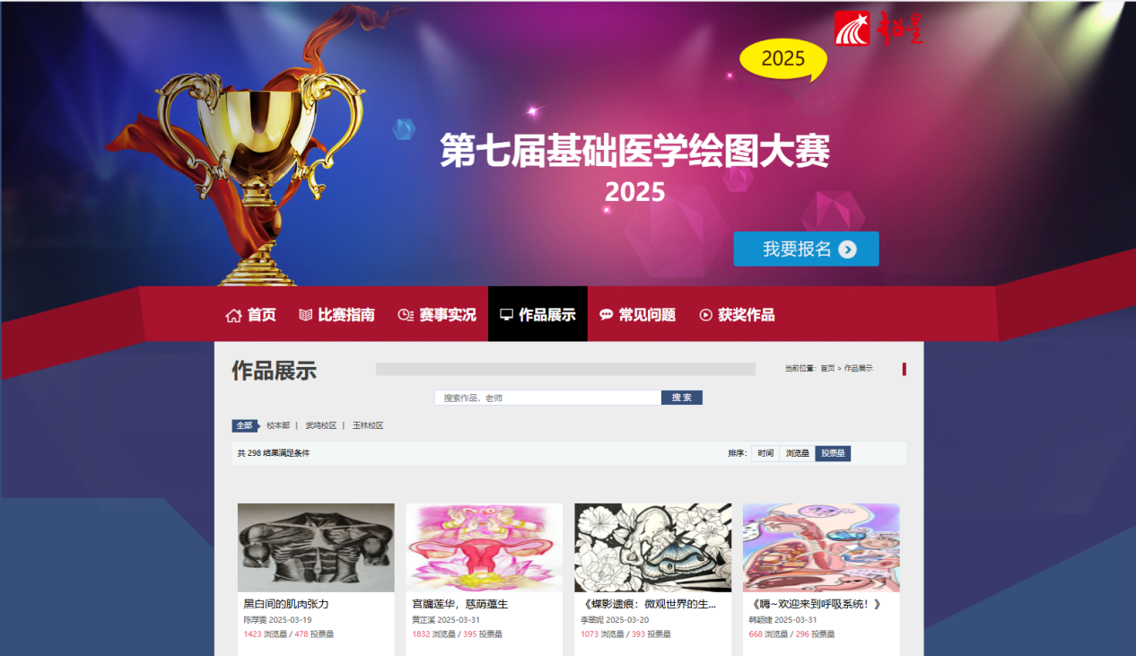 自大赛启动以来,同学们踊跃参与,以医员工独特的视角和细腻的笔触,融合艺术美学,创作出兼具科学性与艺术性的作品。入围复赛作品经现场展示、网络投票及专家评委和员工评委评审,结合作品的科学性、艺术性、创新性等维度综合评定,最终评选出一等奖4名,二等奖16名,三等奖70名。