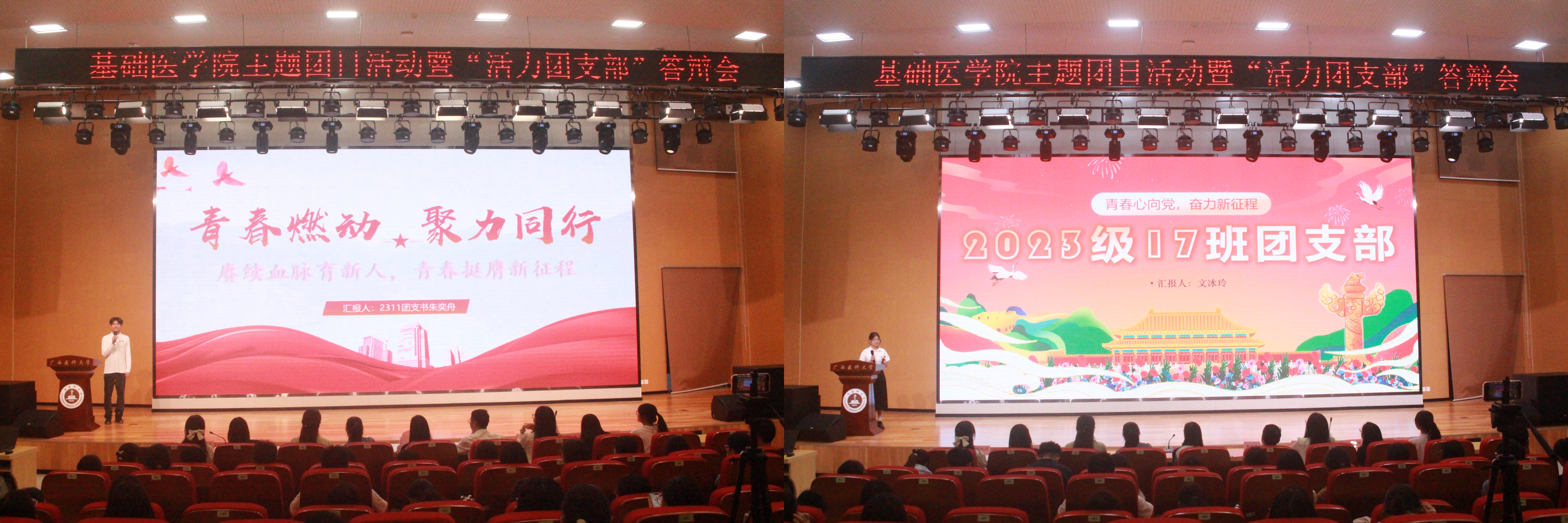 活动在经典朗诵《可爱的中国》中拉开帷幕,并进行团纪执行专题培训,带领现场团员青年致敬抗战先辈,领悟新时代青年的使命担当,落实全面从严管团治团责任。进入年度“活力团支部”创建决赛的团支部陆续登场,团支书立足专业特色,通过图文展示、视频展播、现场解说等形式,系统汇报了支部建设成果,并对现场评委的提问进行答辩。